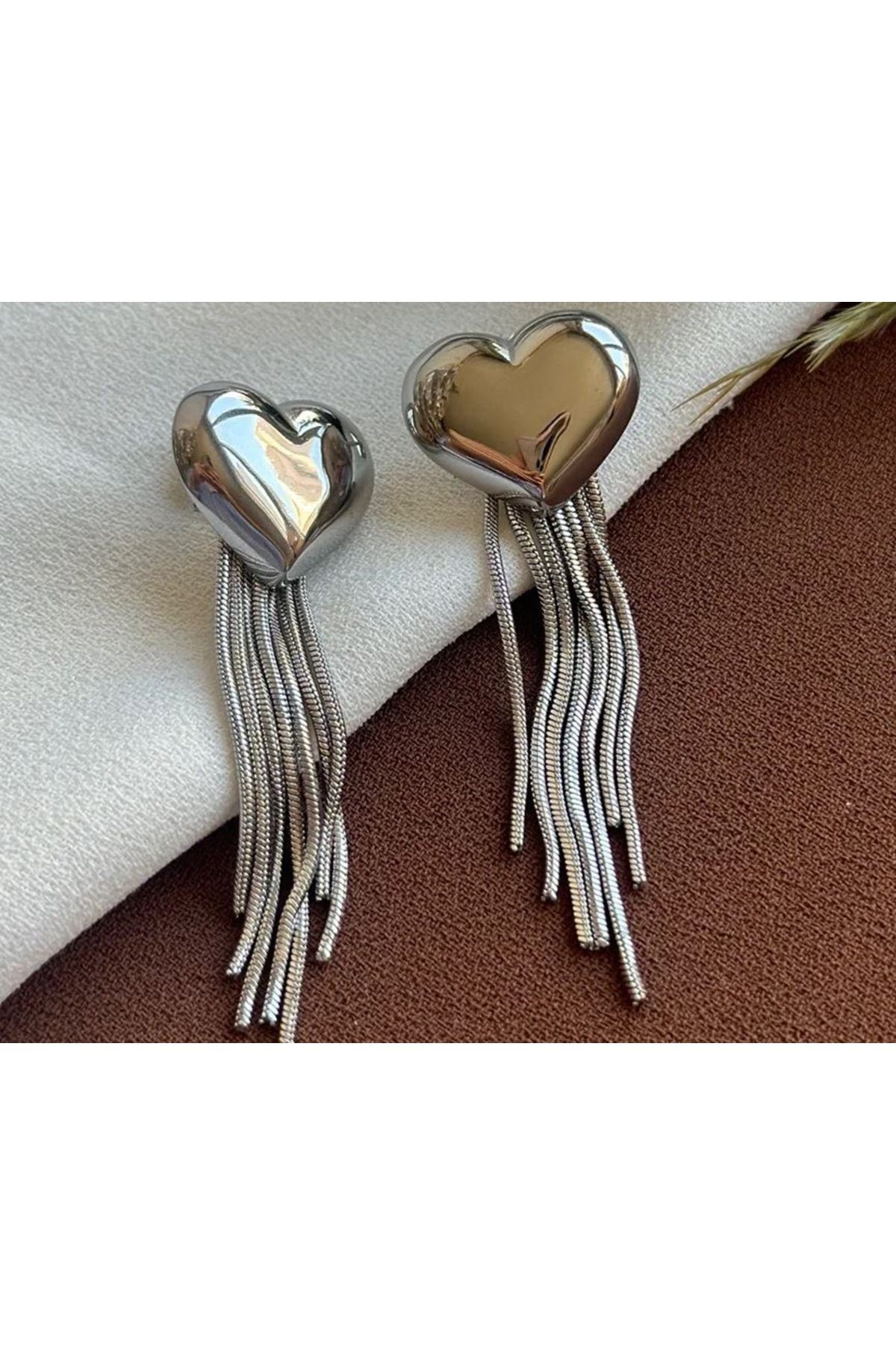 Gümüş Kalp Sallantılı Uzun Şık Küpe