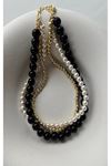Çelik Gold İncili Fiyonk Kolye-Kombinlik