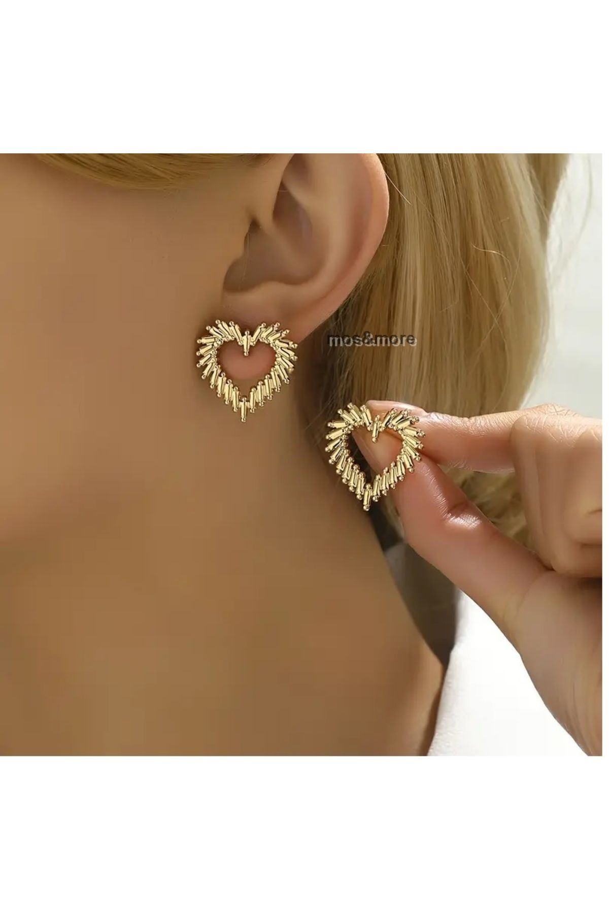 Çelik Gold Kalp Model Şık Kadın Küpe