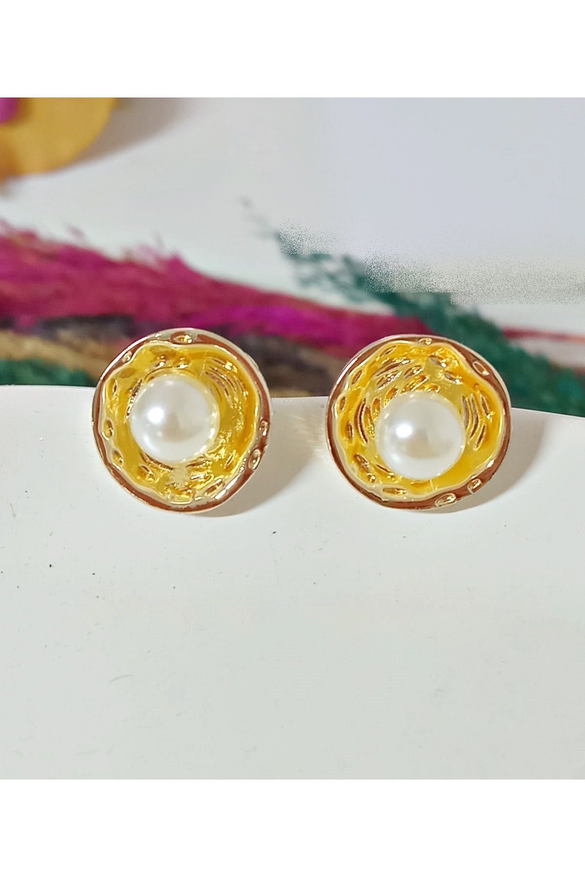 Çelik Gold Ortası İnci Şık Kadın Küpe