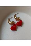Çelik Kırmızı Kalp Damla Gold Kadın Küpe