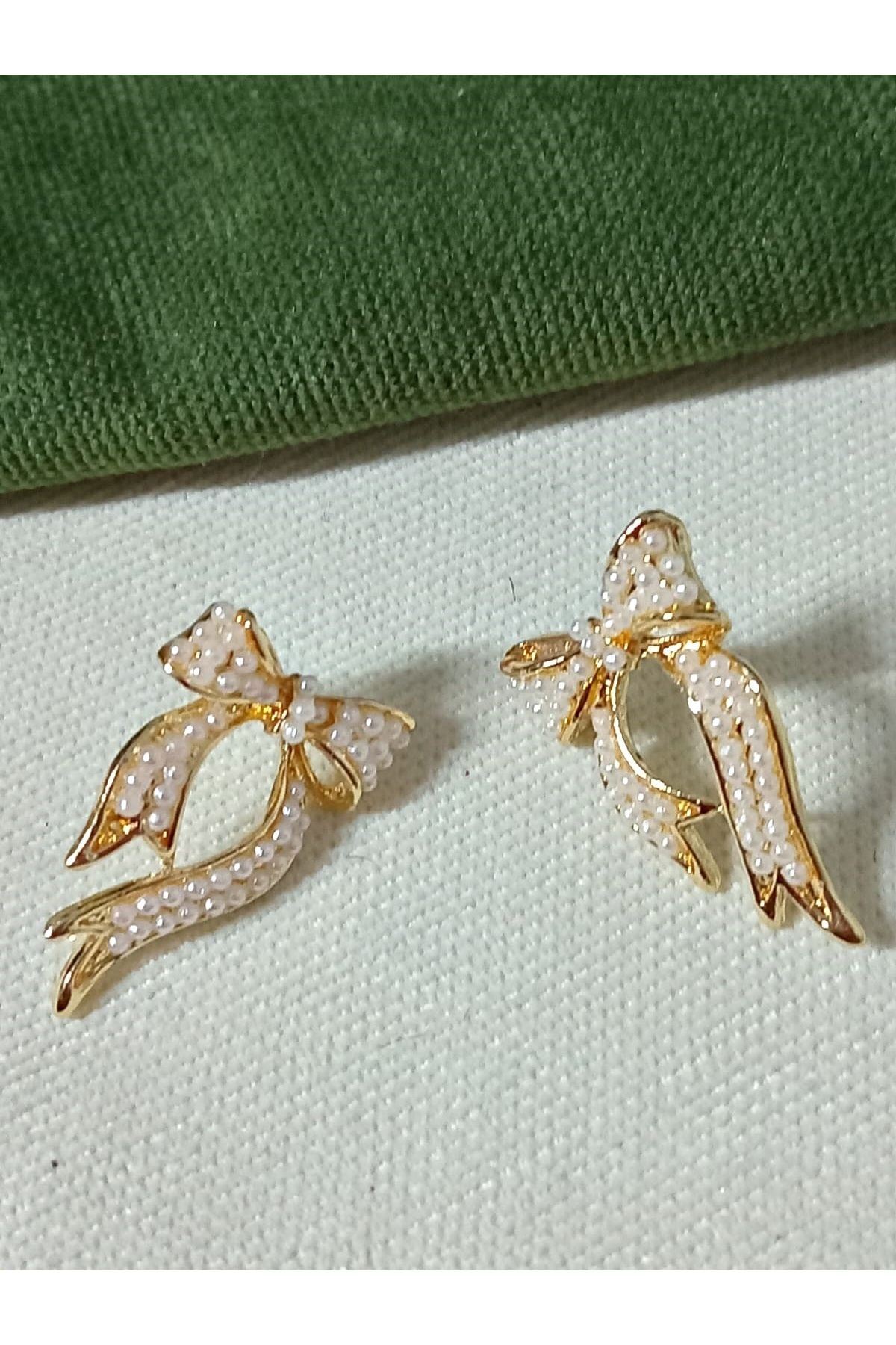 Gold İncili Fiyonk Tasarım Kadın Küpe