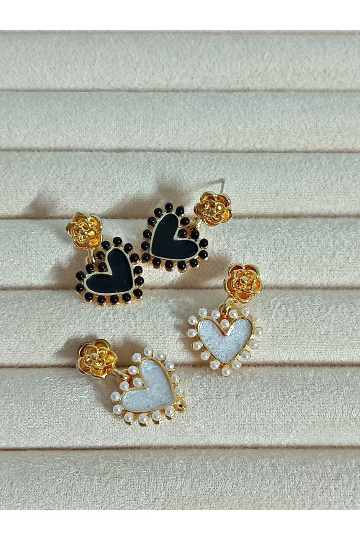 - Zarif tasarımıyla dikkat çeken gold siyah mineli kalp sallantılı küpe, her türlü kıyafetle uyum sağlayarak stilinizi tamamlar.; - Nemli bir bez kullanarak kolayca temizlenebilir yapısı sayesinde pratik bakım imkanı sunar; böylece zaman kazanırken şıklığınızdan ödün vermezsiniz.; - Yerli üretim olup Türkiye'de üretilmiş olması gönül rahatlığıyla tercih edebileceğiniz bir seçenektir.; - Kadınların zarafetini ön plana çıkaran bu küpe, hem günlük kullanım hem de özel günlerde ideal bir aksesuar olarak öne çıkar.; - Dayanıklı çelik materyali ile uzun süreli kullanım vaat ederken, inci detaylarıyla sofistike bir dokunuş katmaktadır.; - Parlak yüzey tipiyle göz alıcı bir parlaklık sergileyerek her ortamda parlamasını sağlar.