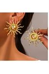 Gold Güneş Şekilli Tasarım Sallantılı Kadın Küpe