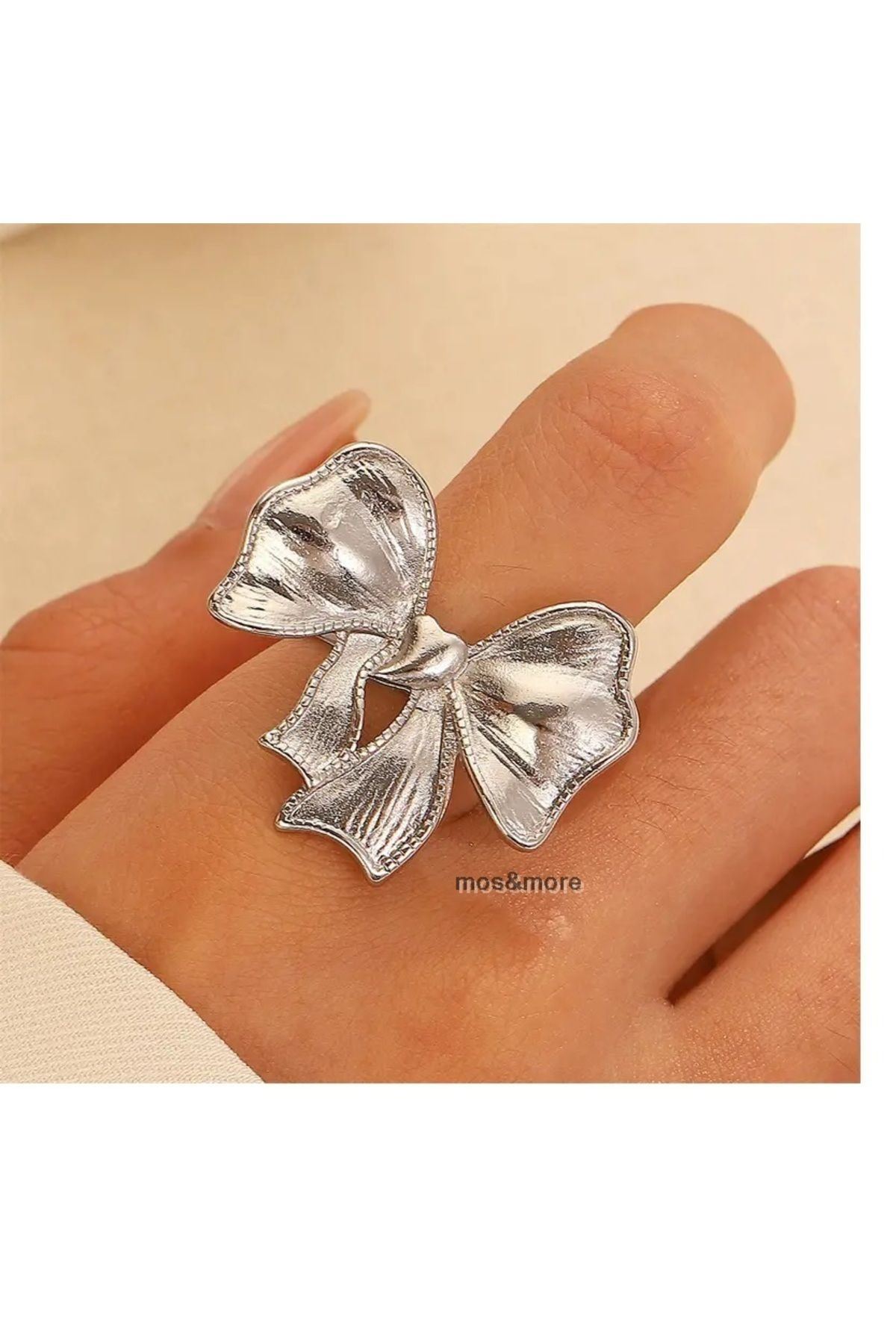 - Zarif tasarımıyla dikkat çeken gümüş trend fiyonk yüzük, her kıyafete şıklık katmak için idealdir.; - Ayarlanabilir yapısı sayesinde farklı parmak ölçülerine kolayca uyum sağlar ve rahat bir kullanım sunar.; - Nemli bir bez ile temizlenmesi pratik bakım imkanı tanır; böylece yüzüğünüzü uzun süre ilk günkü gibi koruyabilirsiniz.; - Türkiye'de üretilmiş olup yerel kaynakların değerini yansıtırken kalite standartlarına da uygunluk gösterir.; - Kadın ve kız kullanıcılar için özel olarak tasarlanmış bu yüzük, zarafetiyle göz alıcı bir aksesuar seçeneği sunar.; - Dayanıklı çelik materyali sayesinde paslanmaya karşı dirençlidir ve günlük kullanımda bile formunu korur.; - Göz alıcı zirkon taş detaylarıyla ışıltınızı arttırarak her ortamda parlamaya devam edersiniz.; - Parlak yüzey tipi ile ışığı mükemmel şekilde yansıtarak etrafınızdaki insanların dikkatini üzerinize toplamanızı sağlar.