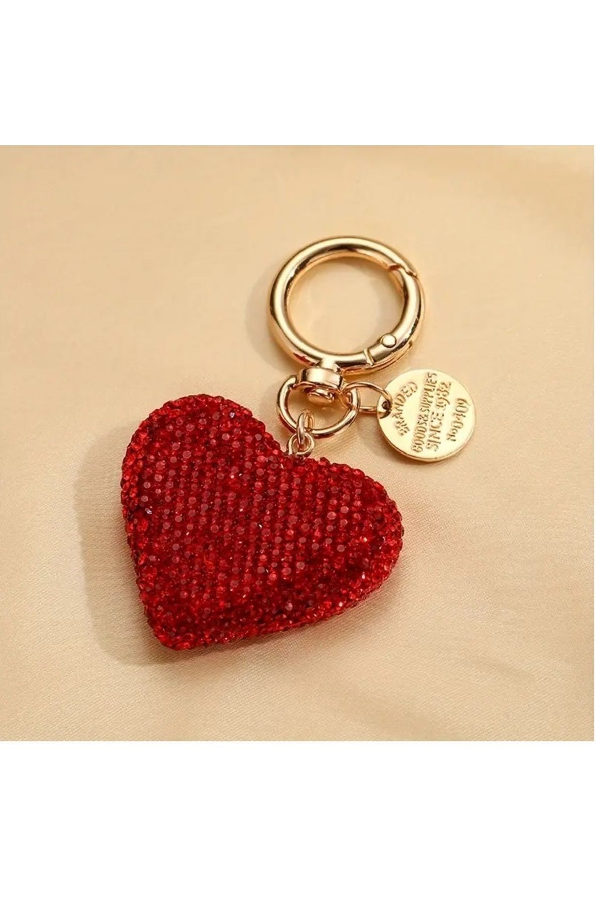 Kırmızı Kalp Taşlı (9CM) Çanta Süsü Aksesuarı Anahtarlık, Araba Süsü,çanta Charmı