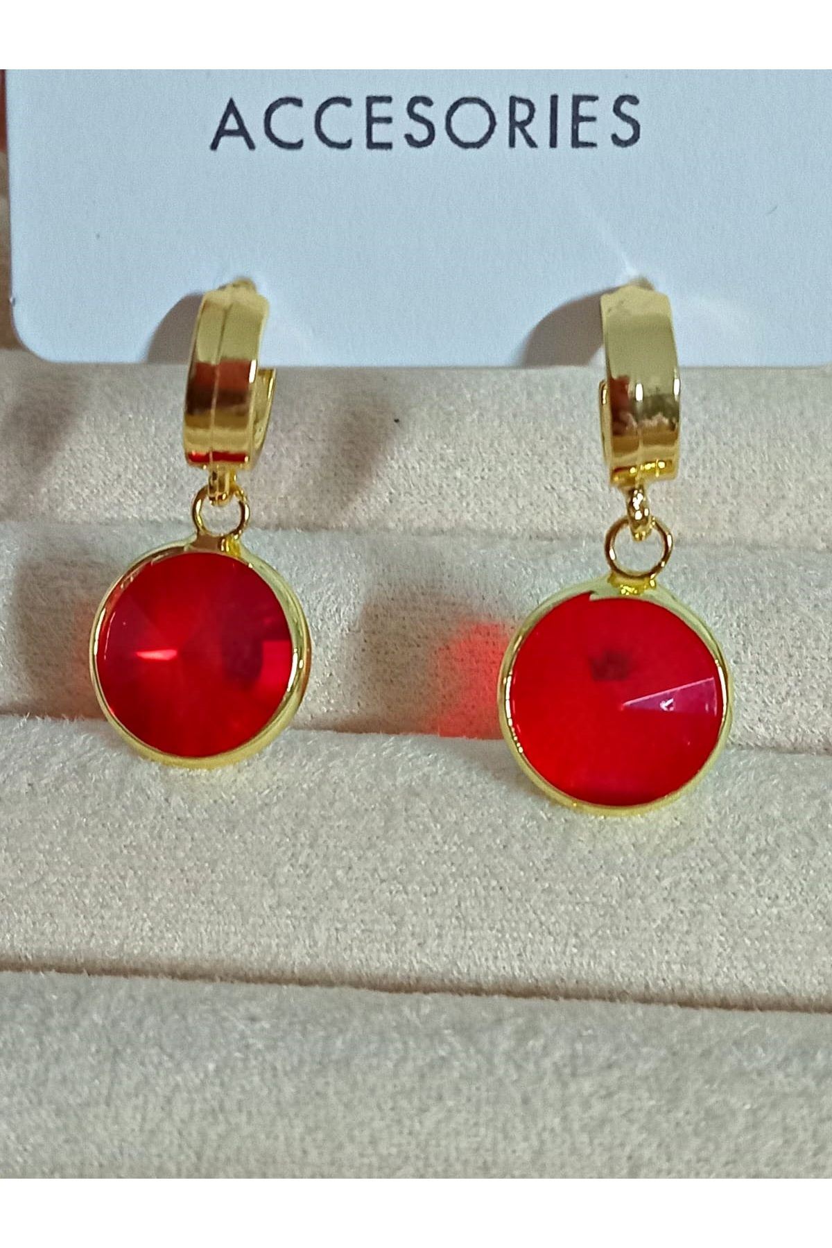 Kırmızı Taşlı Yuvarlak Zamansız Kurtarıcı Şık Kadın Küpe