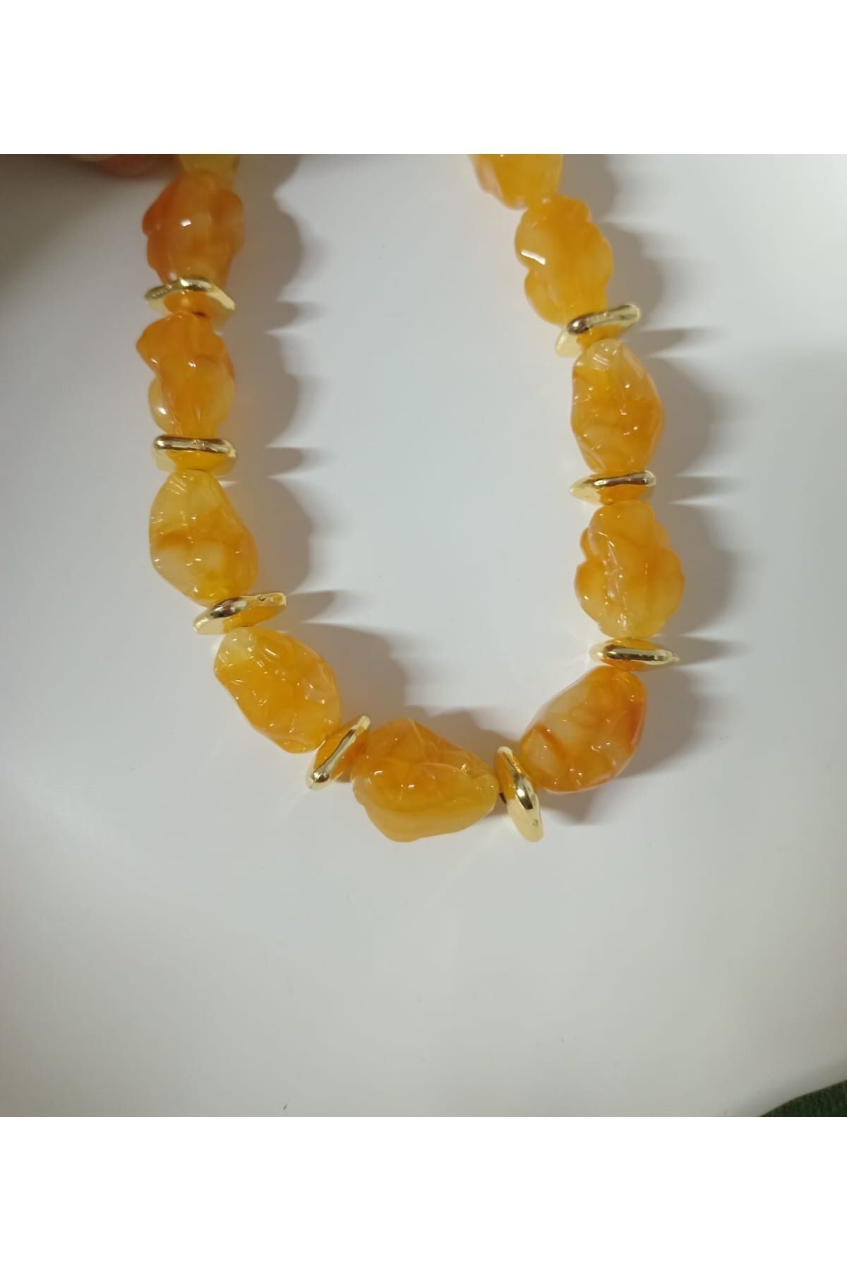 Sarı Boncuklu Şık Abiye Günlük Kadın Kolye