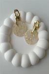 Bej Rengi Taşlı Şık Papatya Çiçek Kadın Küpe